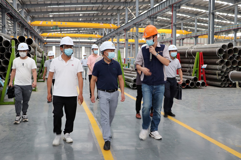 吴良锋一行前往观景平台,观看了产业园全貌并听取相关汇报,随后驱车前往浙江PA旗舰厅钢管有限公司福建分公司,参观了焊管事业部生产车间,详细了解项目建设情况以及企业生产情况。
