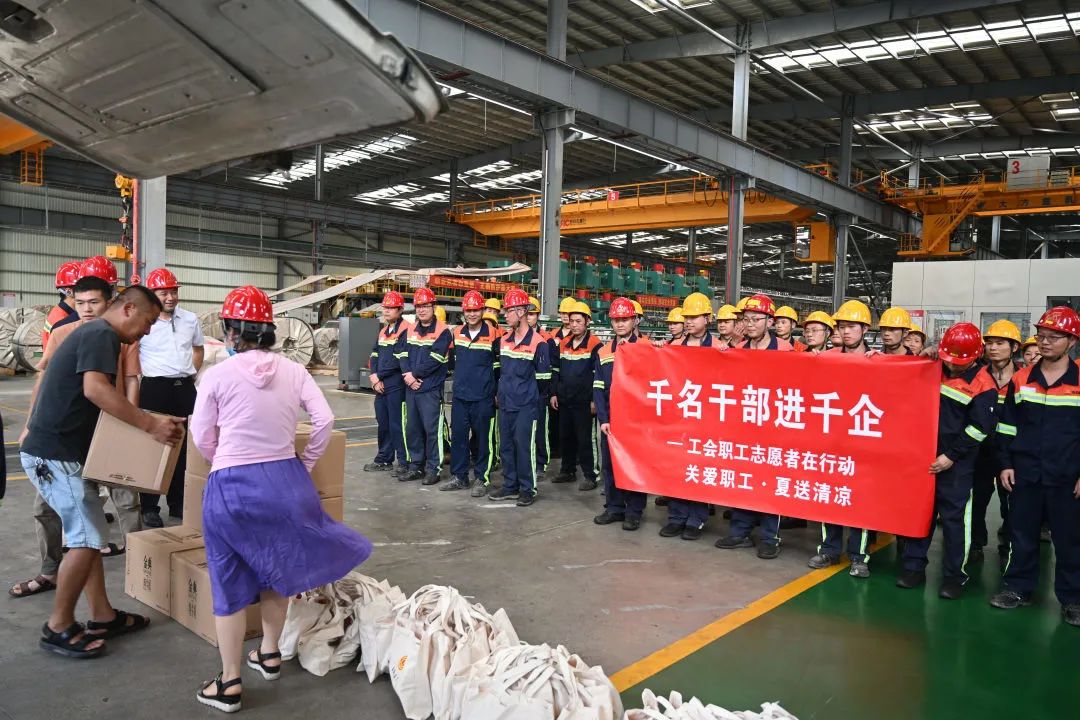 近日,持续的高温给奋战在一线的员工们带来了严峻的考验,他们坚守在不锈钢生产岗位,挥洒汗水,也牵动着大家的心。7月26日,福安市总工会结合“千名干部进千企”活动部署,赴青拓集团有限公司开展了“关爱职工 夏送清凉”慰问活动。福安市总工会党组书记、常务副主席苏振铃,福安市总工会党组成员、副主席王向东带领慰问小组及慰问物资,在青拓集团党委书记、行政总经理钟盛江及福安青拓冷轧科技有限公司副总经理兰亮的陪同下,为坚守在一线的员工送上一份清凉。