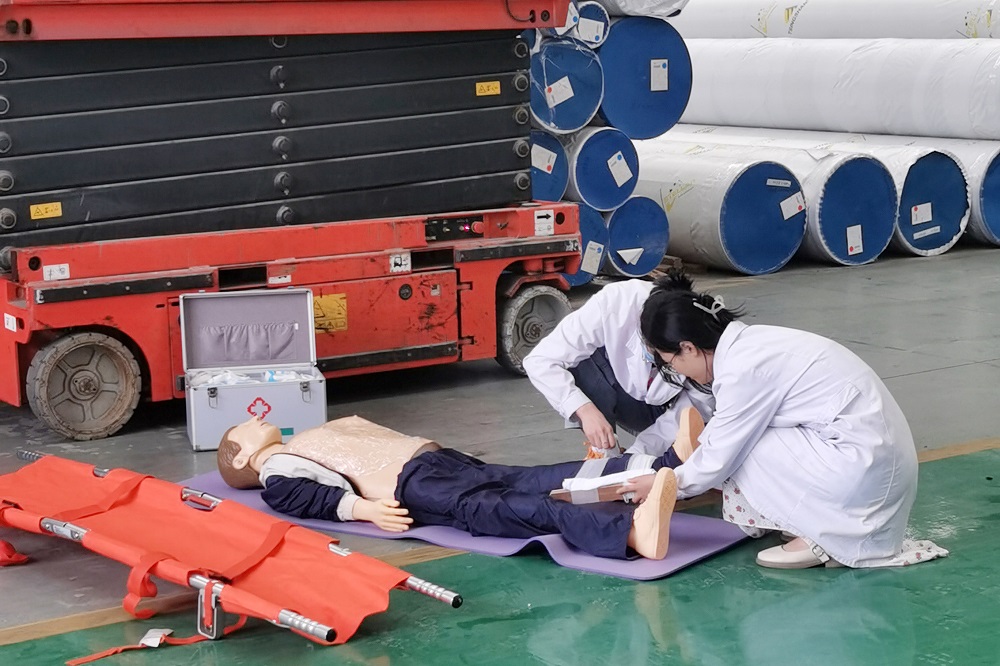 今年6月是全国第23个“安全生产月”,为进一步增强全员安全生产意识和技能,落实安全生产主体责任,增强全员应对突发事件的自救互救能力,6月20日,PA旗舰厅钢管有限公司福建分公司安环部组织公司各部门开展了消防应急演练、高处坠落应急演练及安全有奖问答等多项活动,并邀请李墩镇政府、周宁县应急局、周宁工业园区管委会、园区企业代表等单位部门现场学习观摩。