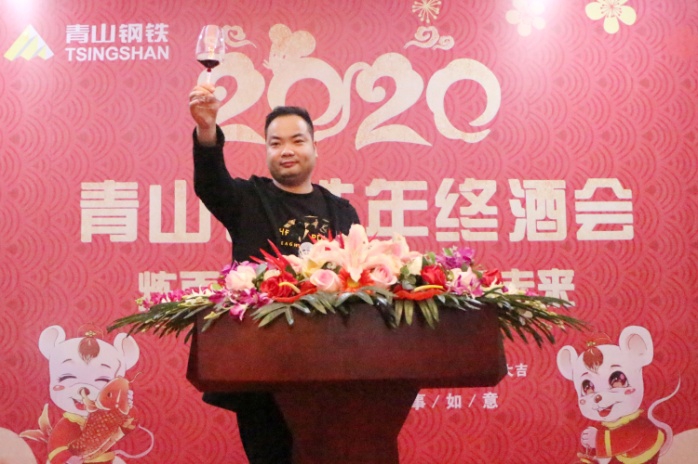 酒会伊始,沈亮致辞,他代表公司向关心和支持公司发展的各位嘉宾表示亲切的问候,向一年来在各工作岗位上认真谋划、亲力亲为的同事表示衷心的感谢,向在公司任劳任怨、为PA旗舰厅发展奉献十五余载的老员工们致以崇高的敬意。他指出:在青拓集团的正确领导下,公司通过引进先进设备、加强基础建设、合理整合资源、调整产品结构、提升产品附加值、加大产品开发力度等一系列有效措施,积极应对市场形势,与时俱进更新发展观念,进一步加快转型升级步伐,圆满地完成了2019年的工作任务,保持了良好的发展态势。成绩属于过去,未来催人奋进,伴随着2019年的完美收官,新时代的壮丽画卷正徐徐展开。展望新的一年,市场竞争愈加激烈,公司将面临更大的挑战,但是风险与机遇并存,希望公司全体员工继续发扬敢为人先、迎难而上的精神,秉承“奋起、争先、严谨、实干”的精神,再接再厉,继续开拓,为实现新的目标而奋斗,为PA旗舰厅的发展壮大做出更大的贡献!