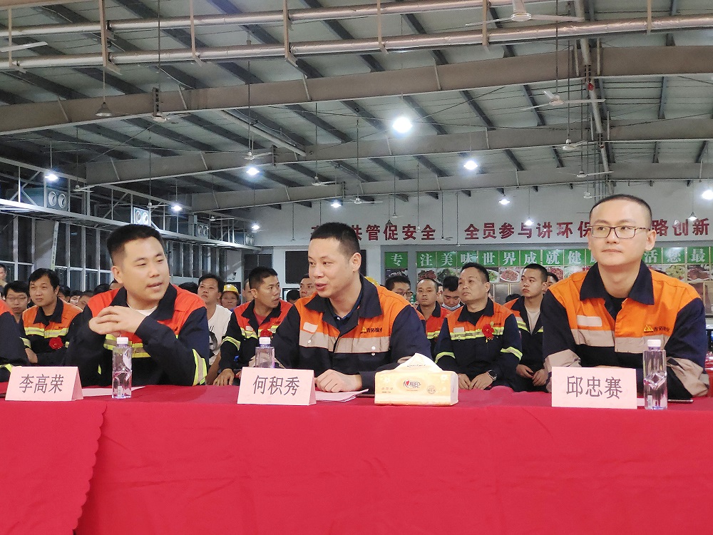 在颁奖环节,何积秀、李高荣为10位先进管理者颁发了荣誉证书及奖金。邱忠赛及生产部长徐敬、项雪锋、辛旺、姚映松等分别为98位先进员工颁发了荣誉证书及奖金。